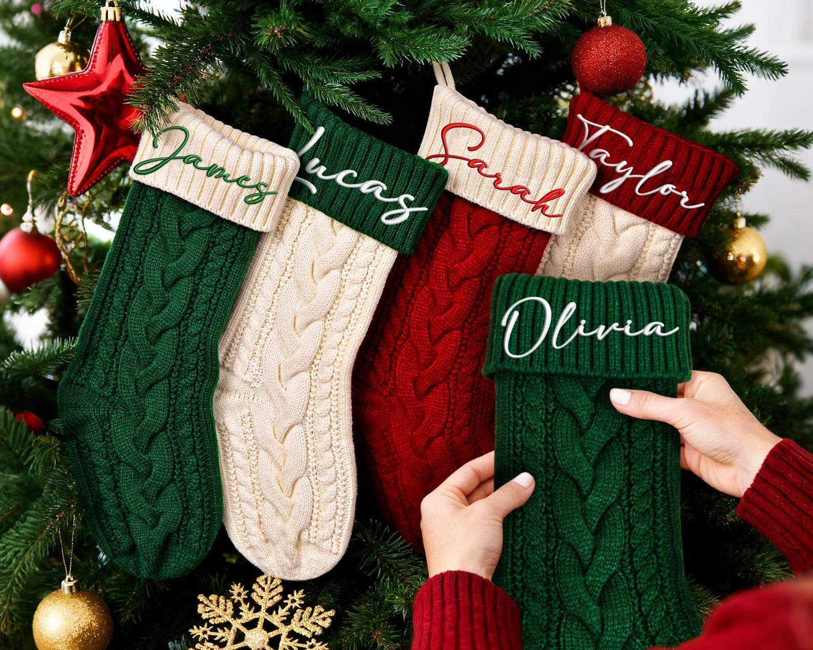 Celebrate the season with a Personalized Embroidered Knit Christmas Stocking — beautifully crafted, soft, and made to last for years. Each stocking is custom-embroidered with your chosen name, initials, or message, creating a timeless keepsake that your family will treasure every Christmas.