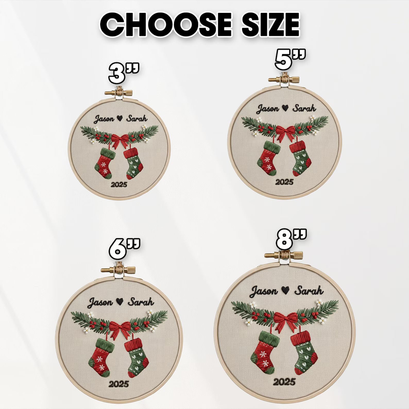 Personalized Couple Embroidery Christmas Ornament, Embroidered Hoop with Names Year